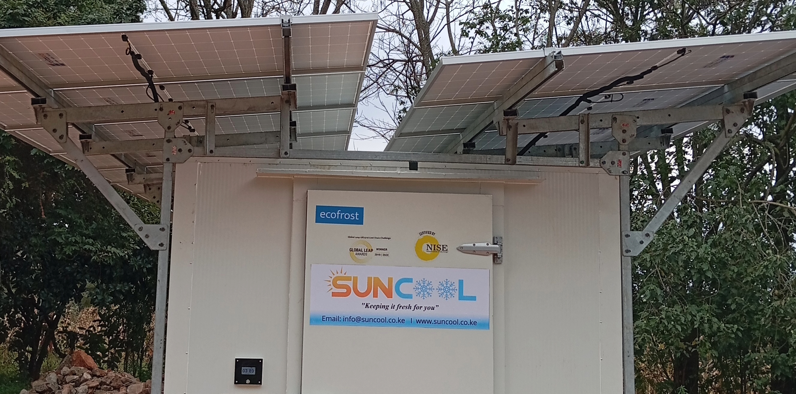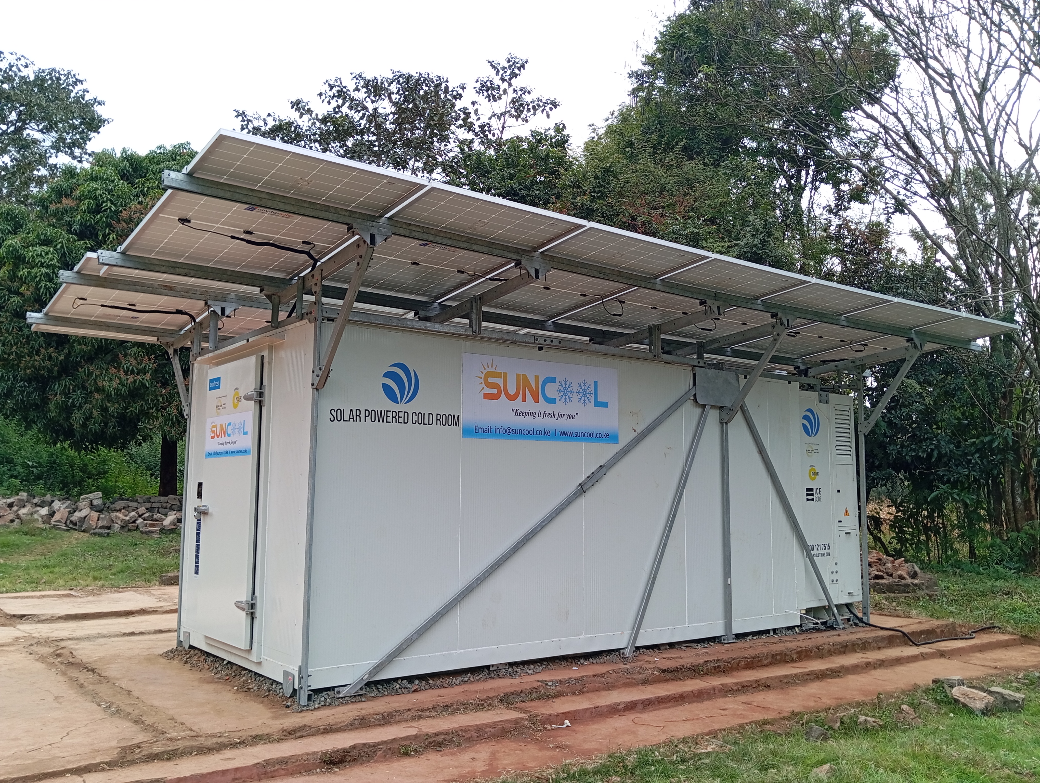 Suncool addresses the 30-40% post-harvest loss at the farm level by providing solar-powered cold storage technology.